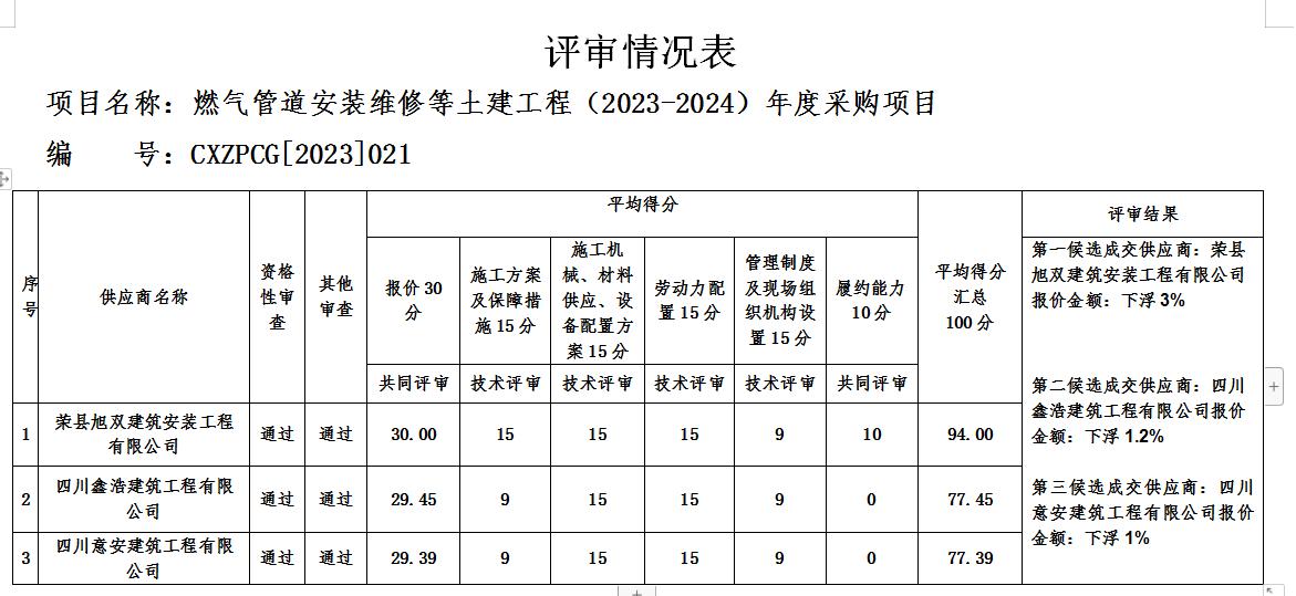 燃?xì)夤艿腊惭b維修等土建工程(2023-2024)年度采購項目按照程序于2023年6月9日15時30分進(jìn)行了競爭性談判,采購人通過談判小組推薦的成交候選供應(yīng)商名單確定了成交供應(yīng)商,現(xiàn)將結(jié)果公示如下: