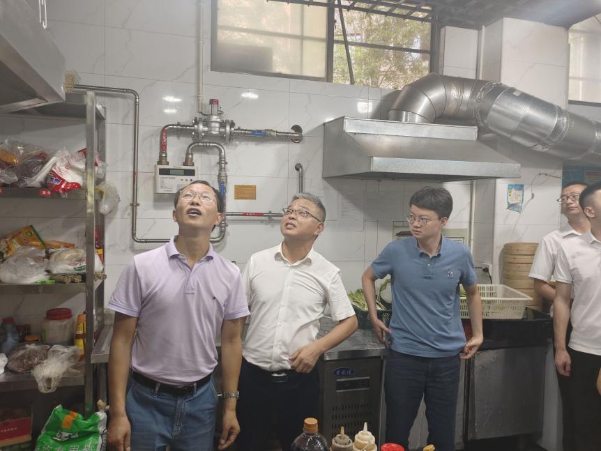 督導(dǎo)組隨機(jī)檢查了榮州大道二段所有非居民用戶用氣環(huán)境、可燃?xì)怏w報(bào)警裝置安裝情況、燃?xì)夤艿罉?biāo)識(shí)標(biāo)志、灶具是否帶熄火保護(hù)裝置、燃?xì)夤艿朗欠褚?guī)范有序等情況。在督導(dǎo)過程中,督導(dǎo)組與相關(guān)負(fù)責(zé)同志充分交流,現(xiàn)場(chǎng)聽取了公司主要負(fù)責(zé)人吳安國(guó)關(guān)于“迎大運(yùn)·保安全”及“6.21”銀川燃?xì)獗ê蟀踩珜m?xiàng)排查整治情況匯報(bào)。