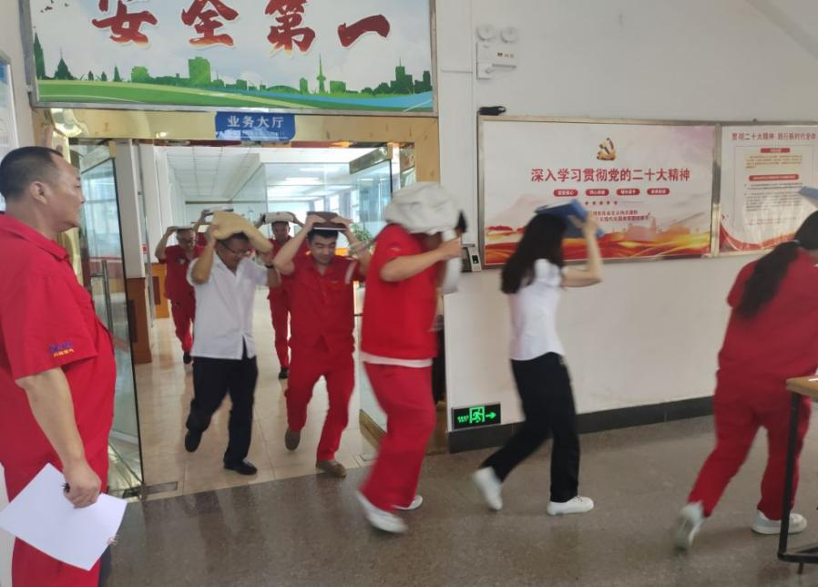 演練前安全監(jiān)察部部長(zhǎng)李伯興對(duì)防火逃生和防震避險(xiǎn)相關(guān)演練流程、演練內(nèi)容、安全疏散路線以及演練安全要求進(jìn)行充分講解。隨后按照演練方案有序組織演練人員開展辦公樓模擬起火的防火逃生演練和地震來(lái)臨時(shí)的避險(xiǎn)逃生演練。