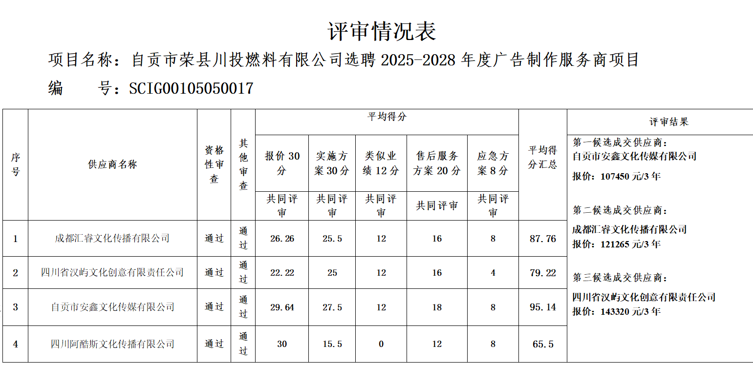 自貢市榮縣川投燃料有限公司 選聘2025-2028年度廣告制作服務(wù)商項(xiàng)目 結(jié)果公示