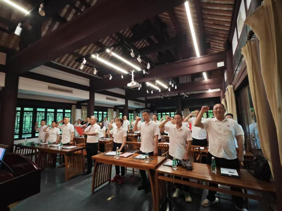 活動(dòng)最后,公司黨支部書(shū)記、執(zhí)行董事、總經(jīng)理吳安國(guó)帶領(lǐng)全體黨員干部莊嚴(yán)宣誓:“嚴(yán)守紀(jì)律規(guī)矩,杜絕利益輸送.......”。鏗鏘誓言在學(xué)堂內(nèi)回蕩,每個(gè)人的眼神中都透露出堅(jiān)定與擔(dān)當(dāng)。